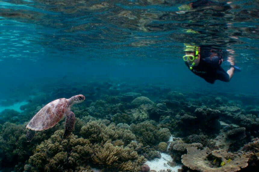 Depending on when you go, you can see whale sharks and humpback whales. It is always possible to see manta rays, turtles, reef sharks, and dolphins.