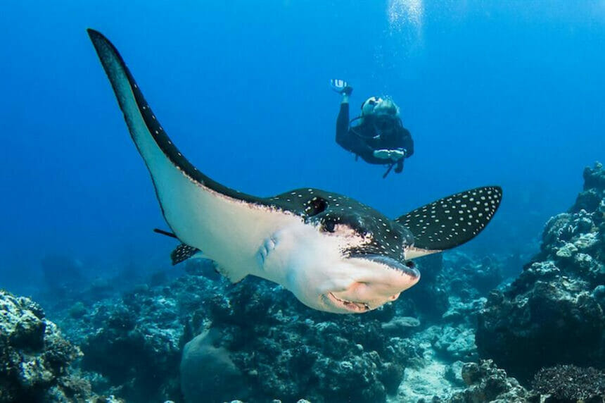 In addition to sharks, you also have a good chance to see manta rays, eagle rays, and schools of tuna and wahoo.