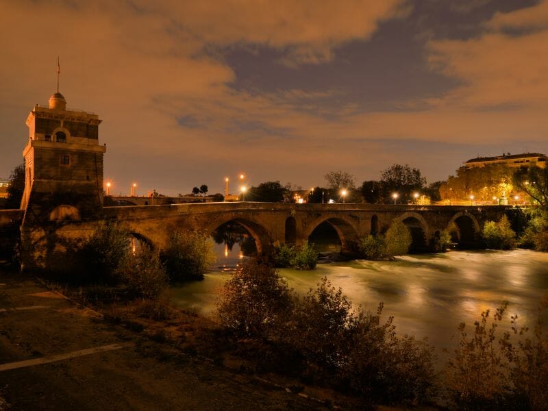 The Milvian Bridge is in the northern part of the city. It holds historical significance as the site of the Battle of Ponte Milvio, which led to the imperial rule of Constantine. With the right light, the view of the bridge from down the Tiber and its reflection on the river make for a gorgeous photo.