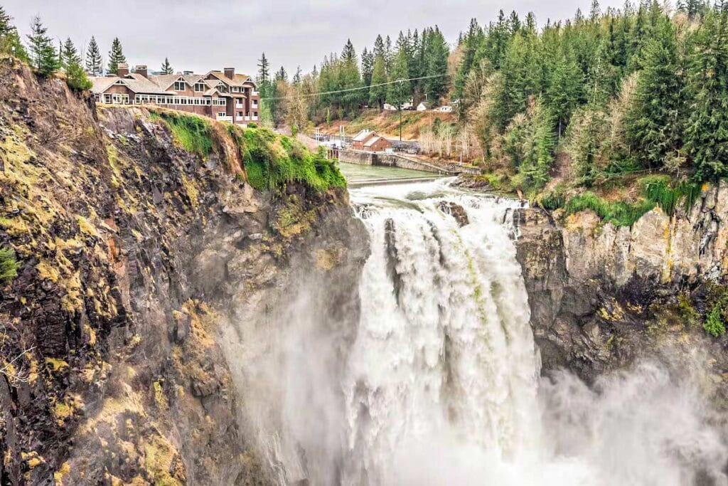 The lodge is located beside a golf course in Snoqualmie, Washington, overlooking the breathtaking Snoqualmie Falls. Northwest Railway Museum is just a mile away from the property and Olallie State Park is nearby as well. Snoqualmie restaurants and shops are less than 10 minute’s drive away.